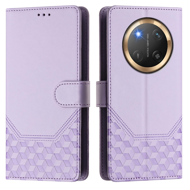 Funda de Cuero Rfid con Relieve en Panal para Honor X9C 5G (Morado Claro)