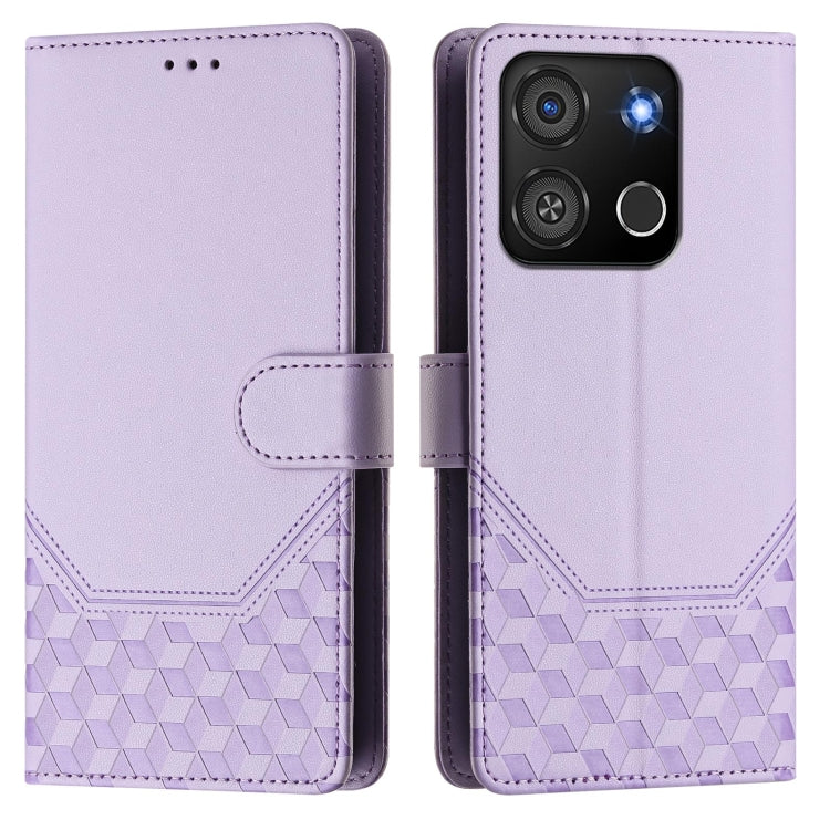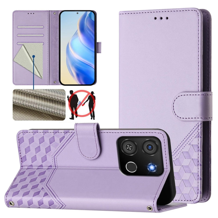 Funda de Cuero Rfid con Relieve en Panal para Teléfono Itel A05S (Morado Claro)