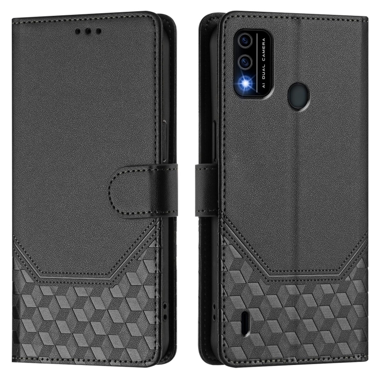 Funda de Cuero Rfid para Teléfono Itel A48 con Relieve en Panal (Negra)