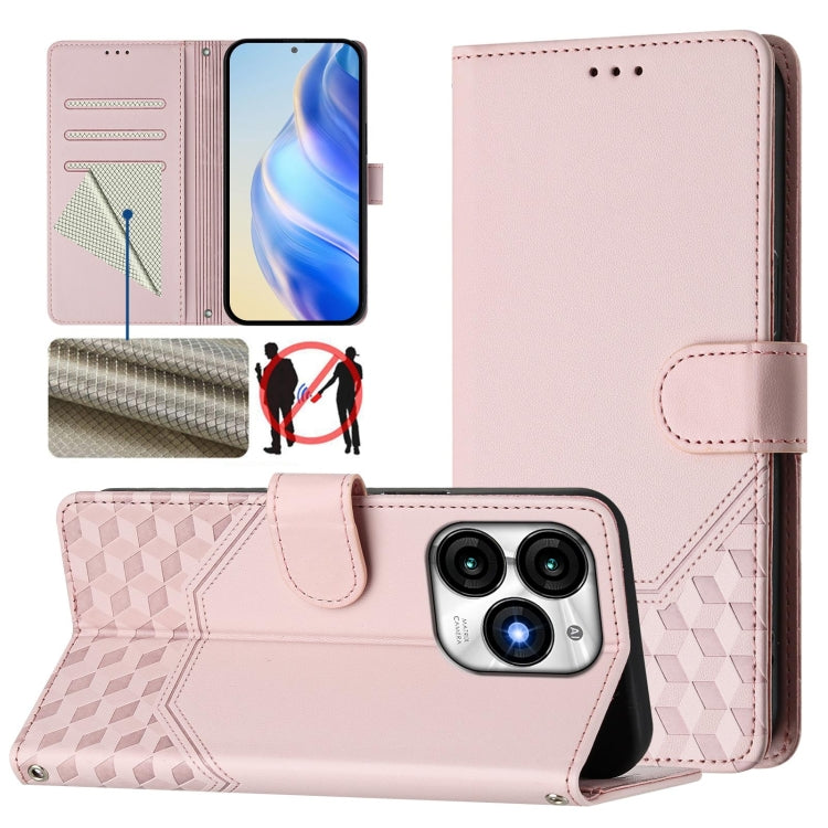 Funda de Cuero Rfid con Relieve en Panal para Teléfono Itel A70 (Rosa)