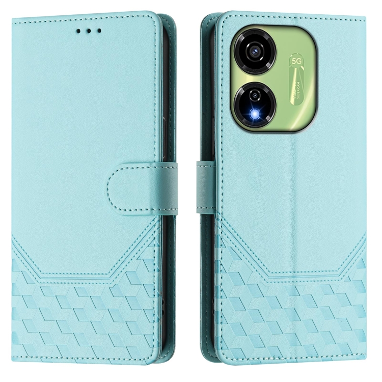 Funda de Cuero Rfid con Relieve en Panal para Teléfono Itel P55 5G (Verde Menta)