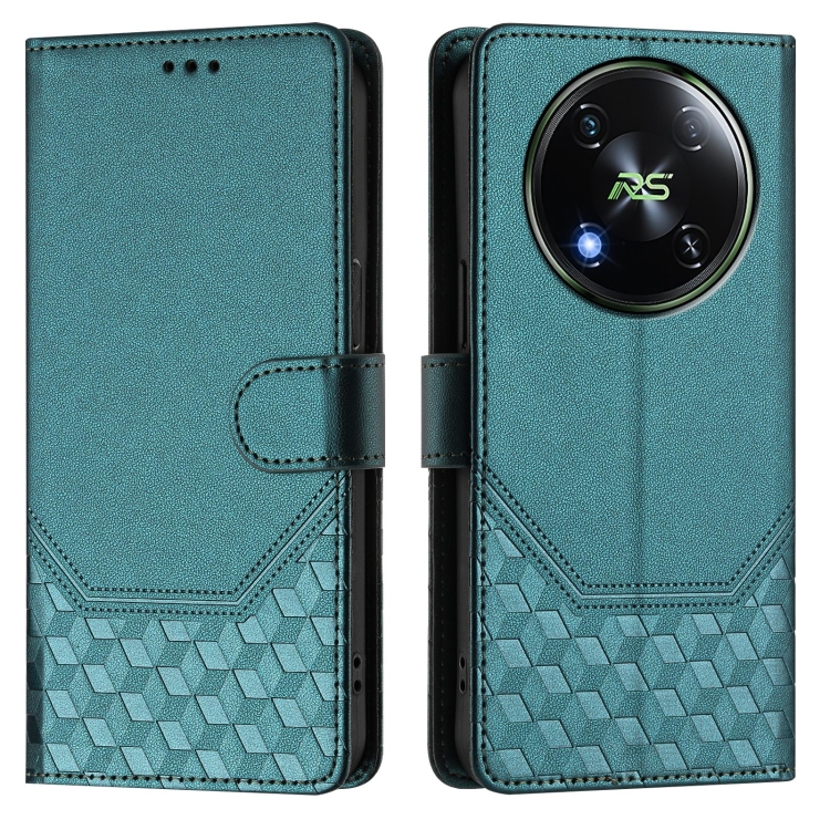 Funda de Cuero Rfid con Relieve en Panal para Teléfono Itel Rs4 S666Ln (Verde Pavo Real)
