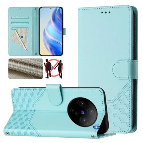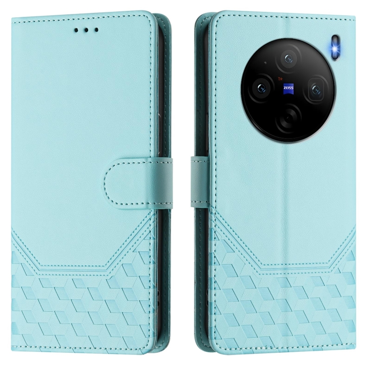 Funda de Cuero Rfid con Relieve En Panal para Vivo X100S 5G (Verde Menta)