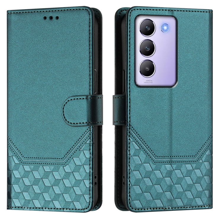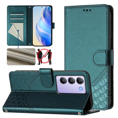Funda de Cuero Rfid con Relieve En Panal para Vivo Y100 Idn/T3 5G Idn (Verde Pavo Real)