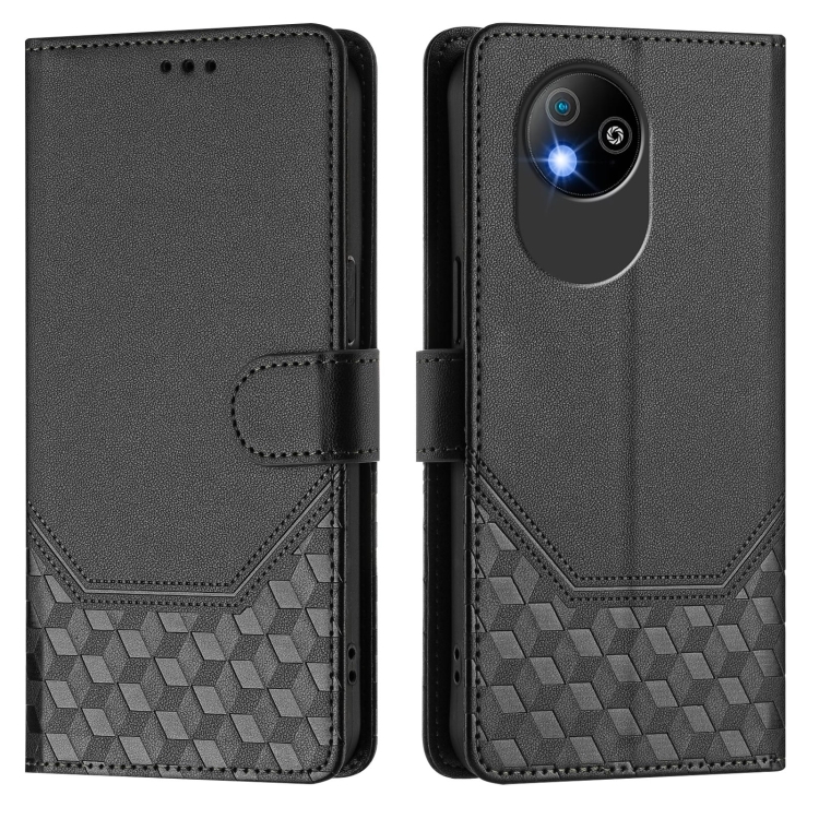 Funda de Cuero Rfid con Relieve en Panal para ZTE Blade A35 Lite (Negra)
