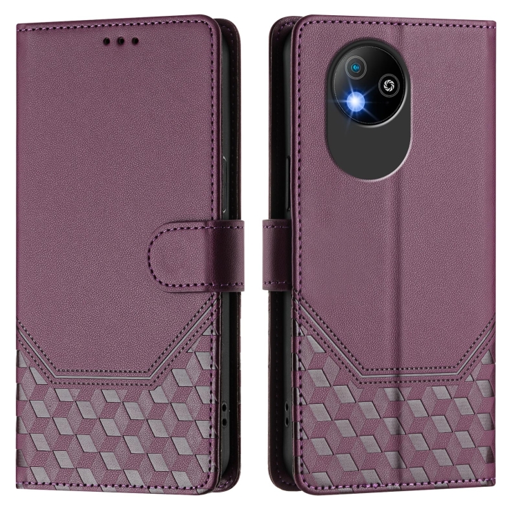 Funda de Cuero Rfid con Relieve en Panal para ZTE Blade A35 Lite (Violeta)