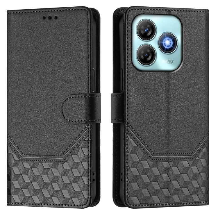 Funda de Cuero Rfid con Relieve En Panal para ZTE Blade A75 4G (Negra)