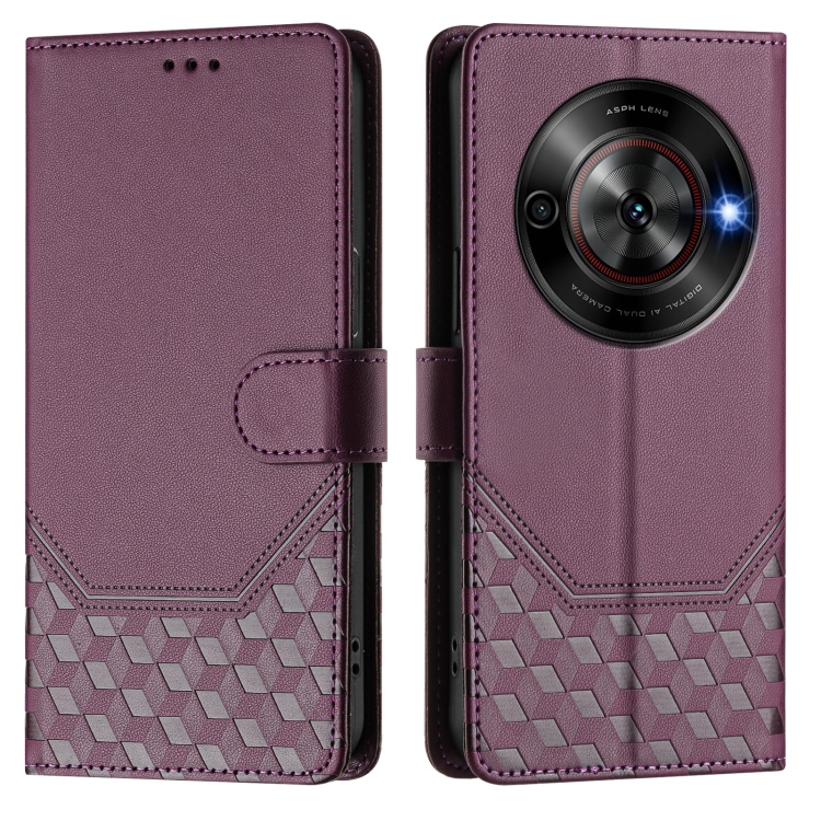 Funda de Cuero Rfid con Relieve en Panal para ZTE Blade A75 5G (Violeta)
