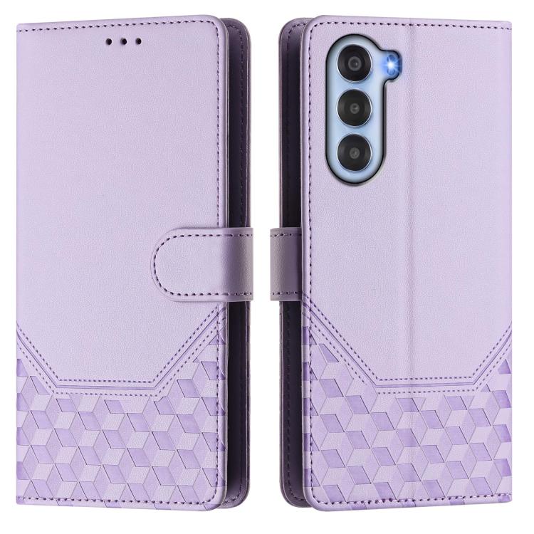 Funda de Cuero Rfid con Relieve en Panal para ZTE Nubia S 5G A403Zt (Morado Claro)