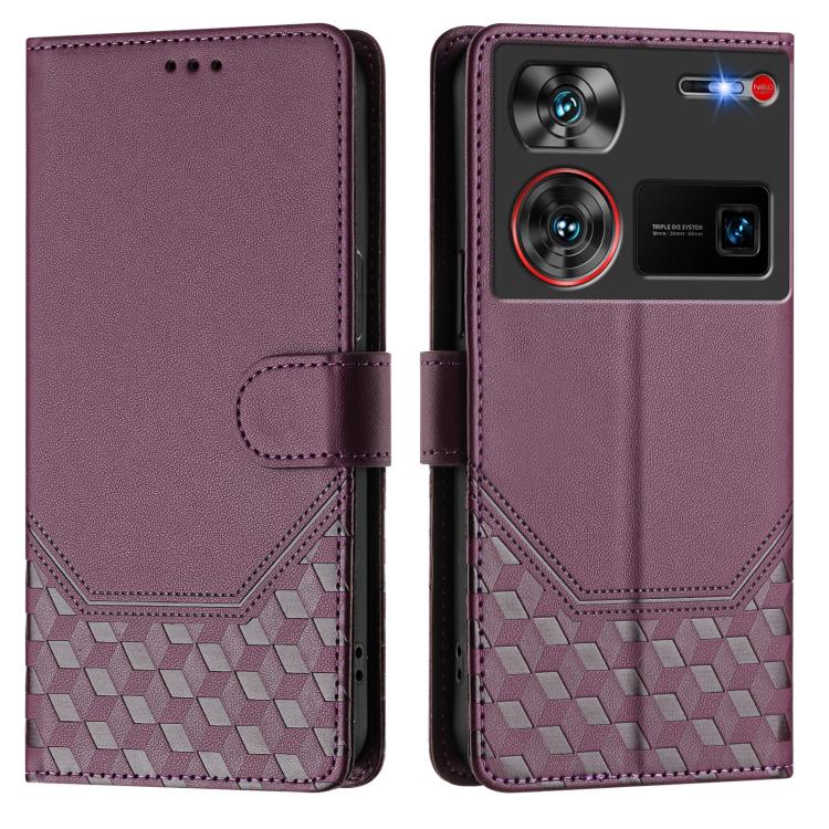 Funda de Cuero Rfid con Relieve en Panal para ZTE Nubia Z60 Ultra (Violeta)