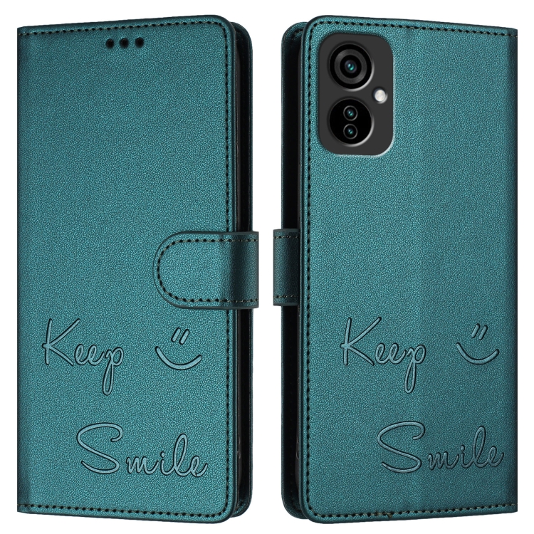 Funda de Cuero Rfid con Relieve Smile para Tecno Camon 19 Neo (Verde Pavo Real)