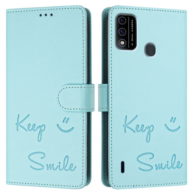Funda de Cuero Rfid con Relieve Smile para Teléfono Itel A48 (Verde Menta)