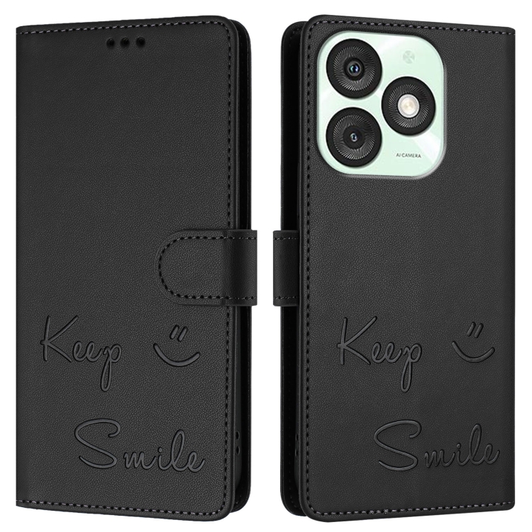 Funda de Cuero Rfid con Relieve Smile para Teléfono Itel A50 (Negra)