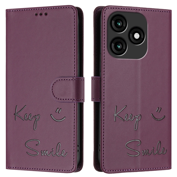 Funda de Cuero Rfid con Relieve Smile para Teléfono Itel A70 (Violeta)