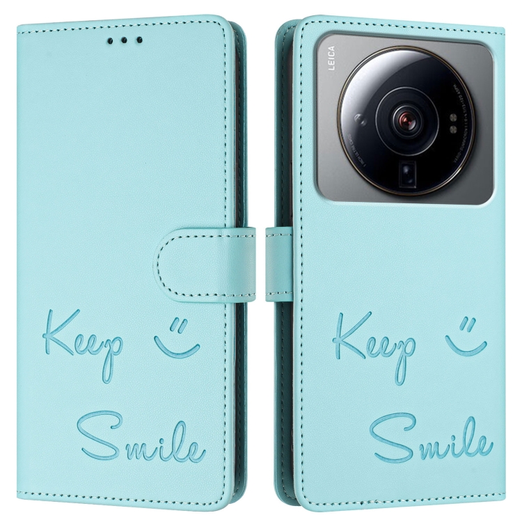 Funda de Cuero Rfid con Relieve Smile para Xiaomi 12S Ultra (Verde Menta)