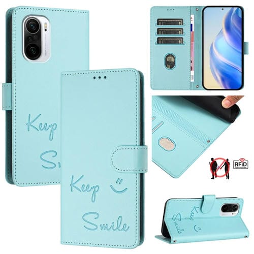 Funda de Cuero Rfid con Relieve Smile para Xiaomi Poco F3 (Verde Menta)