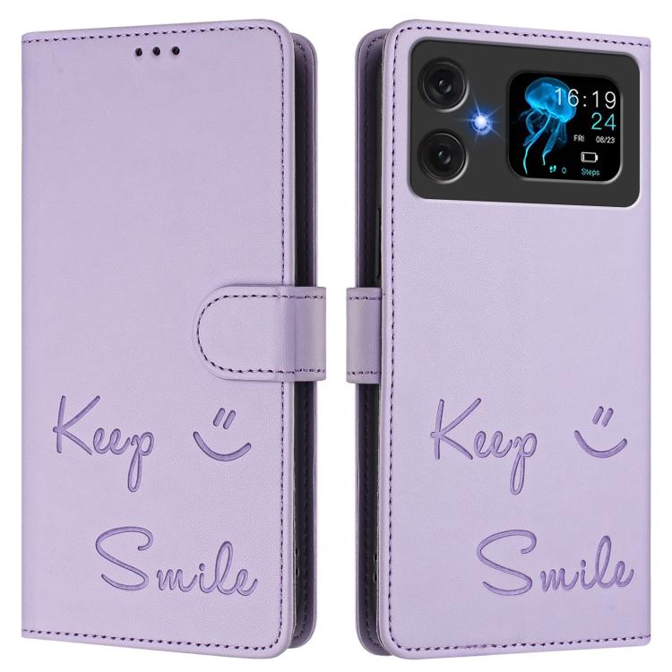 Funda de Cuero Rfid con Relieve Sonriente para Cubot A20 (Morado Claro)