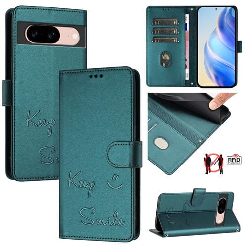 Funda de Cuero Rfid con Relieve Sonriente para Google Pixel 8A (Verde Pavo Real)