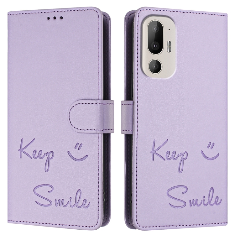 Funda de Cuero Rfid para HTC U24 Pro con Relieve Sonriente (Morado Claro)