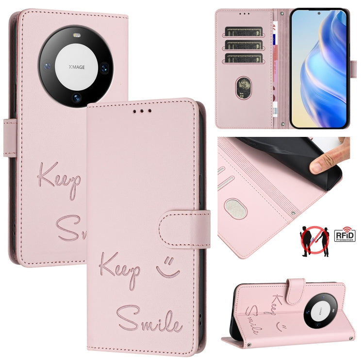 Funda de Cuero Rfid para Huawei Mate 60 con Relieve Sonriente (Rosa)