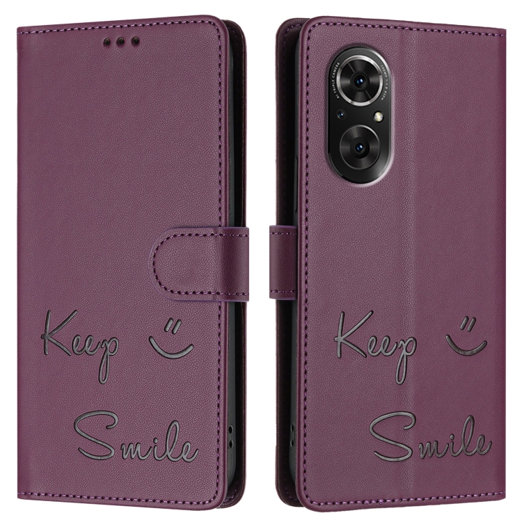 Funda de Cuero Rfid con Relieve Sonriente para Huawei Nova 9 Se (Violeta)