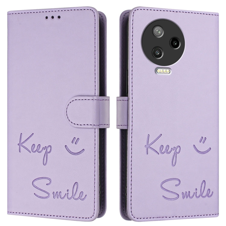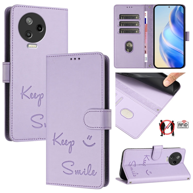 Funda de Cuero Rfid con Relieve Sonriente para Infinix Note 12 Pro 4G/Note 12 (2023) (Morado Claro)