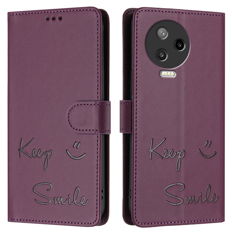 Funda de Cuero RFID con Relieve Sonriente para Infinix Note 12 Pro 4G y Note 12 (2023) (Violeta)