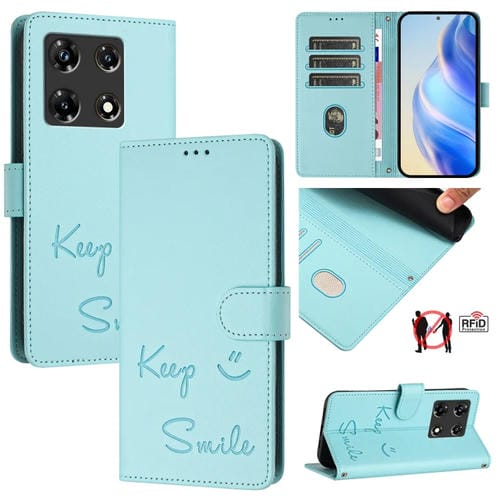 Funda de Cuero Rfid con Relieve Sonriente para Infinix Note 30 Pro y Note 30 5G (Verde Menta)