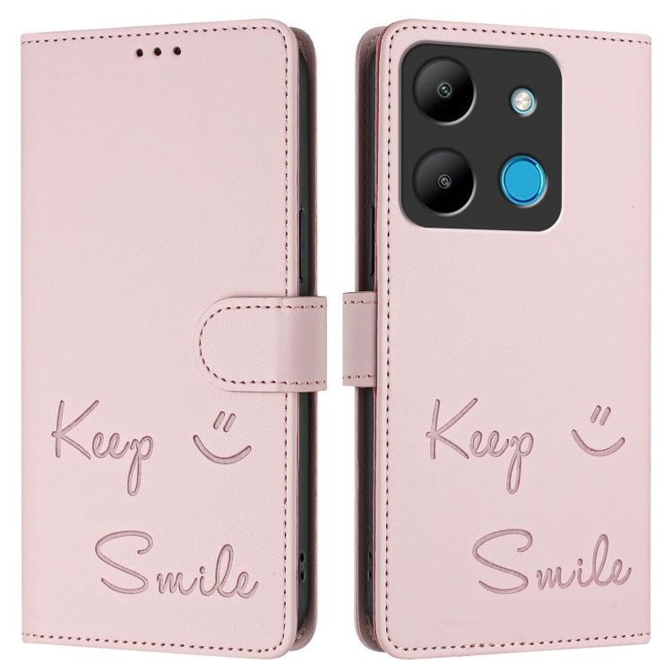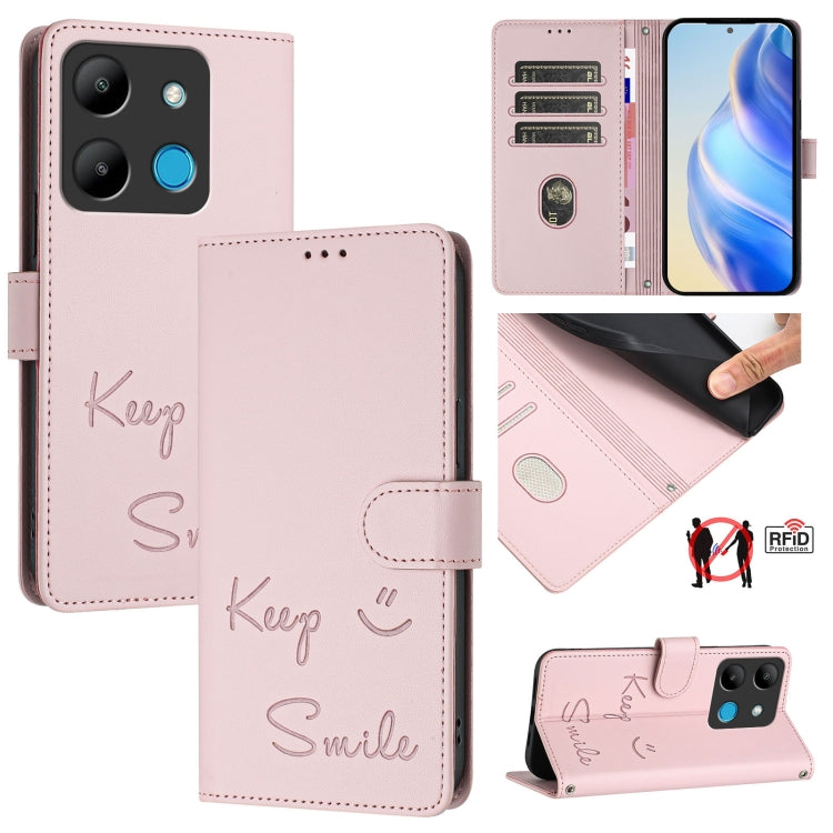 Funda de Cuero Rfid con Relieve Sonriente para Infinix Smart 7 HD y Smart 7 Plus (Rosa)