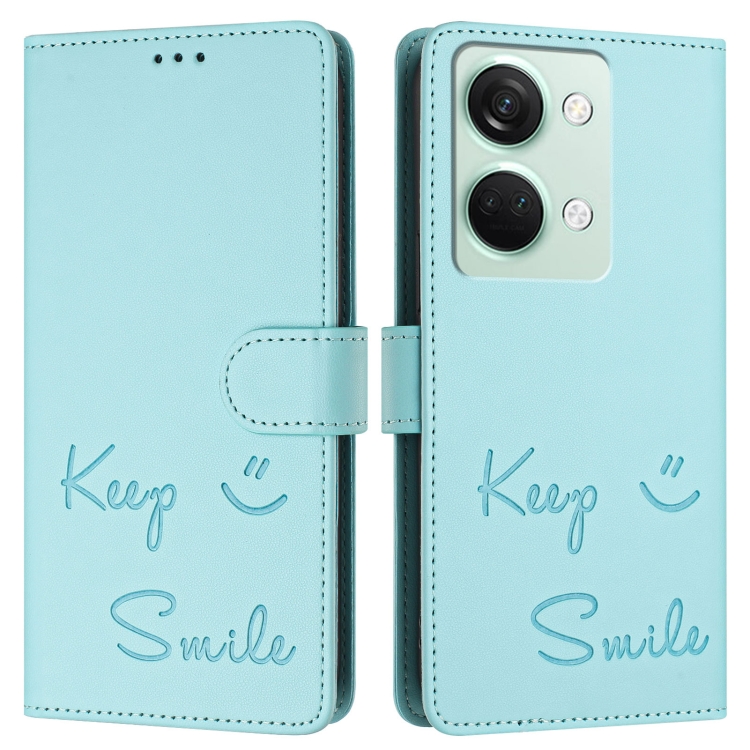 Funda de Cuero Rfid con Relieve Sonriente para OnePlus Ace 2V y Nord 3 (Verde Menta)