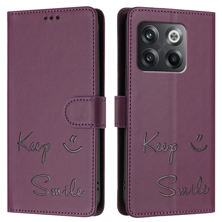 Funda de Cuero Rfid con Relieve Sonriente para OnePlus Ace Pro/10T (Violeta)