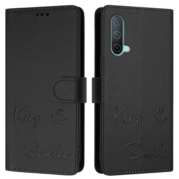 Funda de Cuero Rfid con Relieve Sonriente para OnePlus Nord Ce 5G (Negra)
