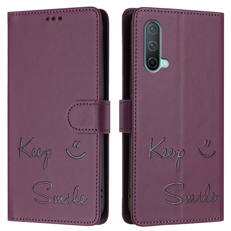 Funda de Cuero Rfid con Relieve Sonriente para OnePlus Nord Ce 5G (Violeta)