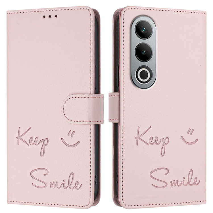 Funda Cuero Rfid con Relieve Sonriente para OnePlus Nord Ce4 (Rosa)