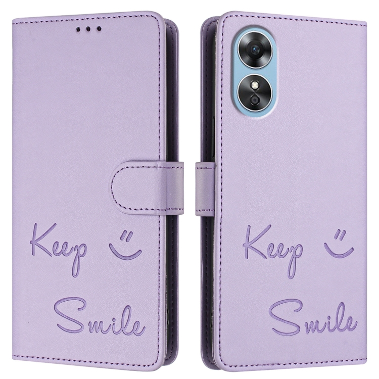 Funda de Cuero Rfid con Relieve Sonriente para Oppo A17 4G Global/A17K (Morado Claro)