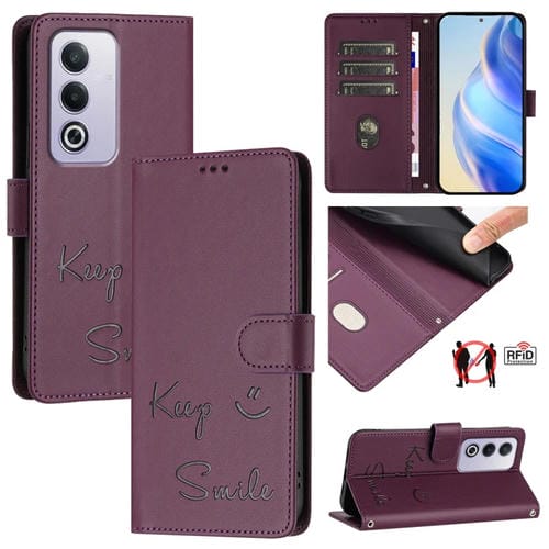 Funda de Cuero Rfid con Relieve Sonriente para Oppo A3 Pro 5G Global/India (Violeta)