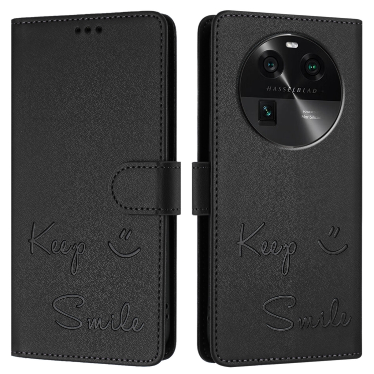 Funda de Cuero Rfid con Relieve Sonriente para Oppo Find X6 (Negra)