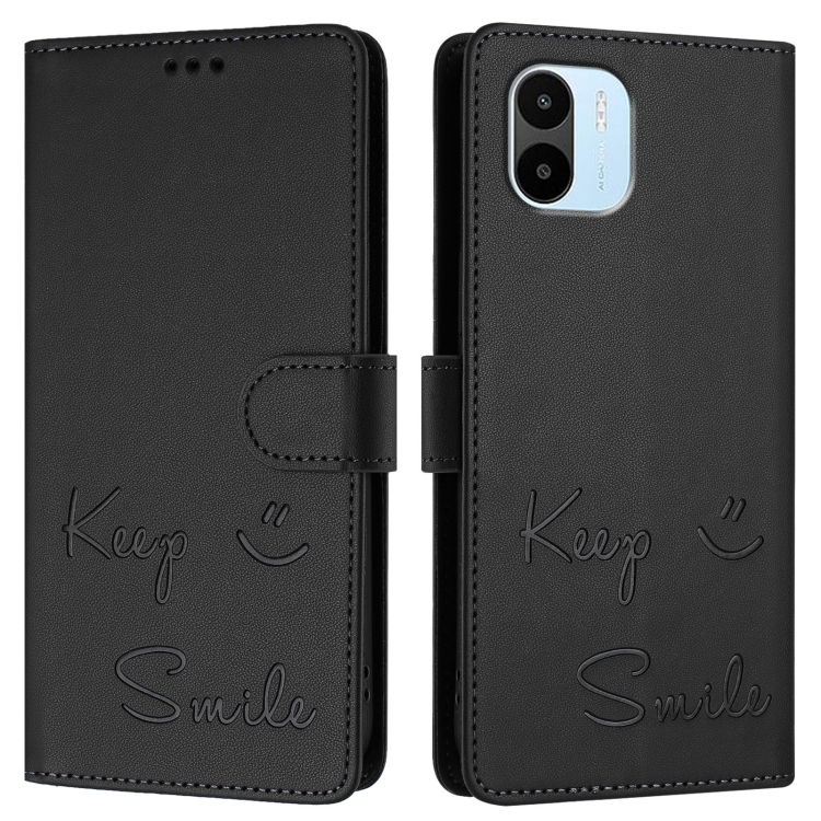 Funda de Cuero Rfid con Relieve Sonriente para Redmi A1/A2 (Negra)