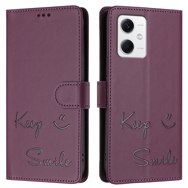 Funda de Cuero Rfid con Relieve Sonriente para Redmi Note 12 5G Global/India (Violeta)