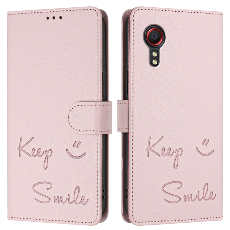 Funda Cuero Rfid Samsung Galaxy Xcover 5 Relieve Sonriente (Rosa)