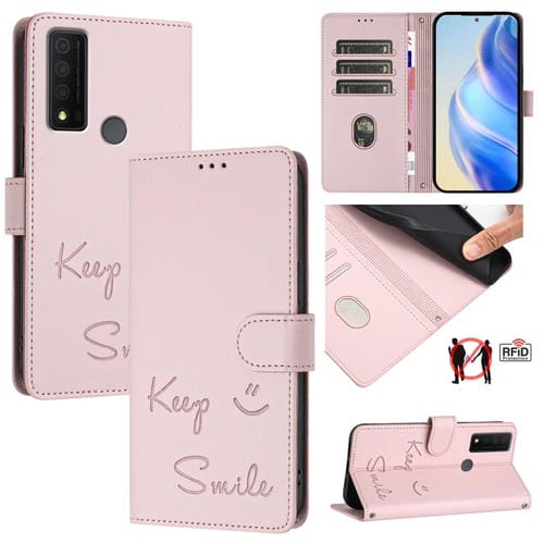 Funda de Cuero Rfid con Relieve Sonriente para TCL 30 Xe 5G (Rosa)