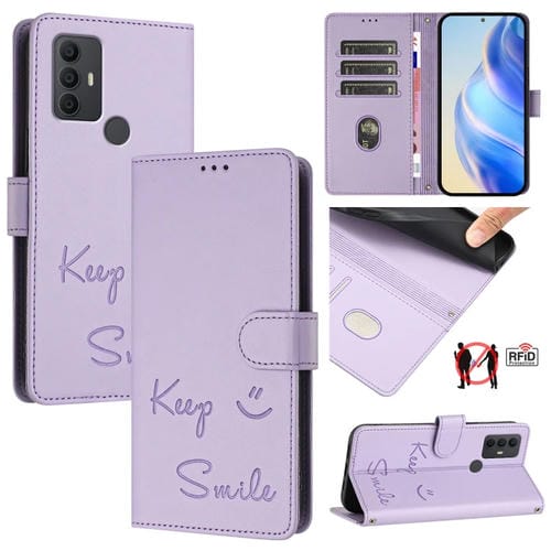 Funda de Cuero Rfid con Relieve Sonriente para TCL 305/306 (Morado Claro)