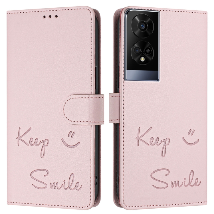 Funda Cuero Rfid con Relieve Sonriente para TCL 50 Xe 5G (Rosa)