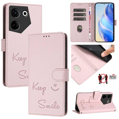 Funda de Cuero Rfid con Relieve Sonriente para Tecno Camon 20/20 Pro 4G (Rosa)