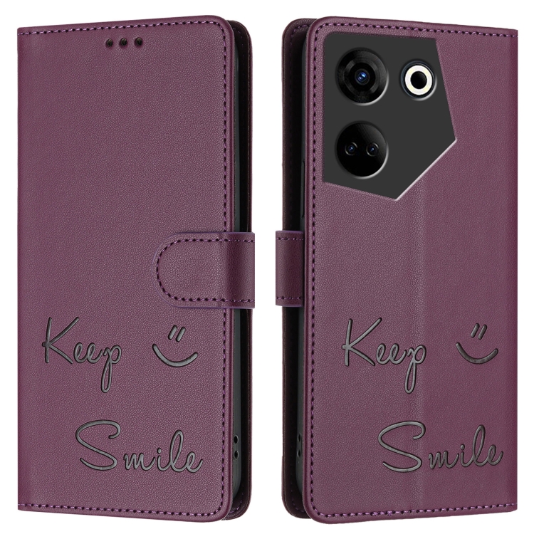 Funda de Cuero Rfid con Relieve Sonriente para Tecno Camon 20/20 Pro 4G (Violeta)