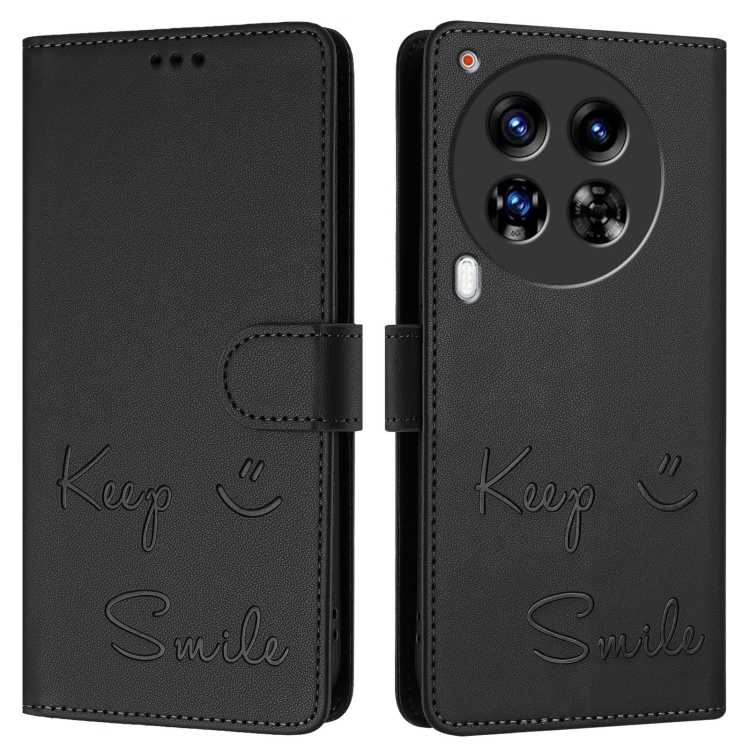 Funda de Cuero Rfid con Relieve Sonriente para Tecno Camon 30 Premier 5G (Negra)