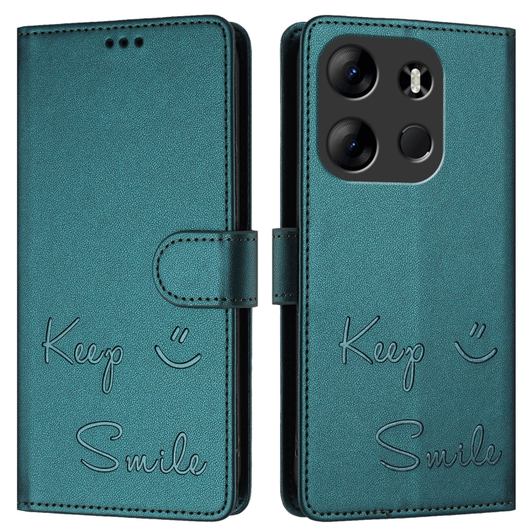 Funda de Cuero Rfid con Relieve Sonriente para Tecno Pop 7 y Pop 7 Pro (Verde Pavo Real)