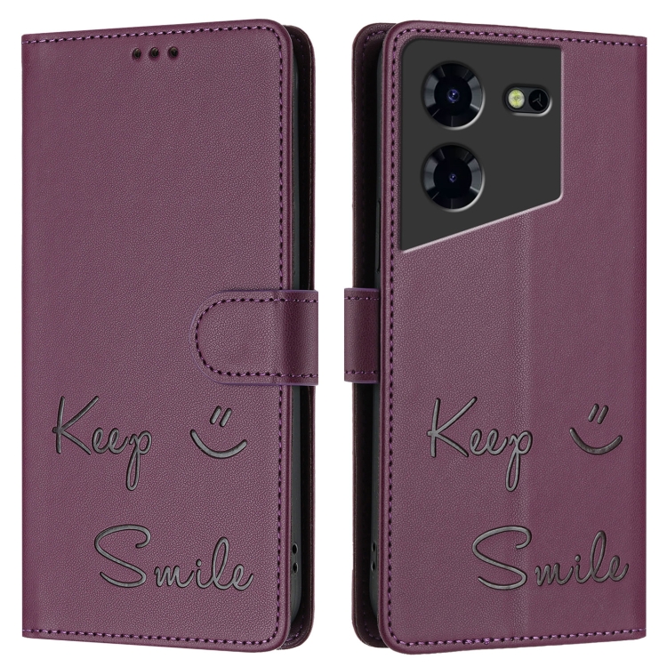 Funda de Cuero Rfid con Relieve Sonriente para Tecno Pova 5 Pro 5G (Violeta)