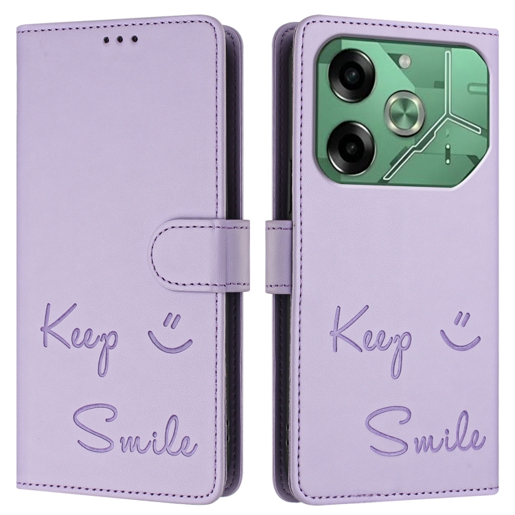Funda Cuero Rfid con Relieve Sonriente para Tecno Pova 6 4G (Morado Claro)