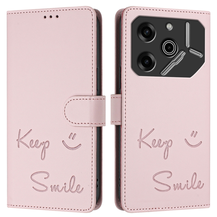 Funda de Cuero Rfid con Relieve Sonriente para Tecno Pova 6 Pro y Pova 6 5G (Rosa)